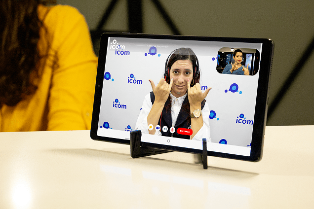 Com o ICOM, sua empresa se torna referência em acessibilidade e inclusão. Nossa plataforma conecta pessoas surdas e ouvintes por meio de tradução simultânea em Libras, tanto no ambiente de trabalho quanto nos canais de atendimento ao cliente.